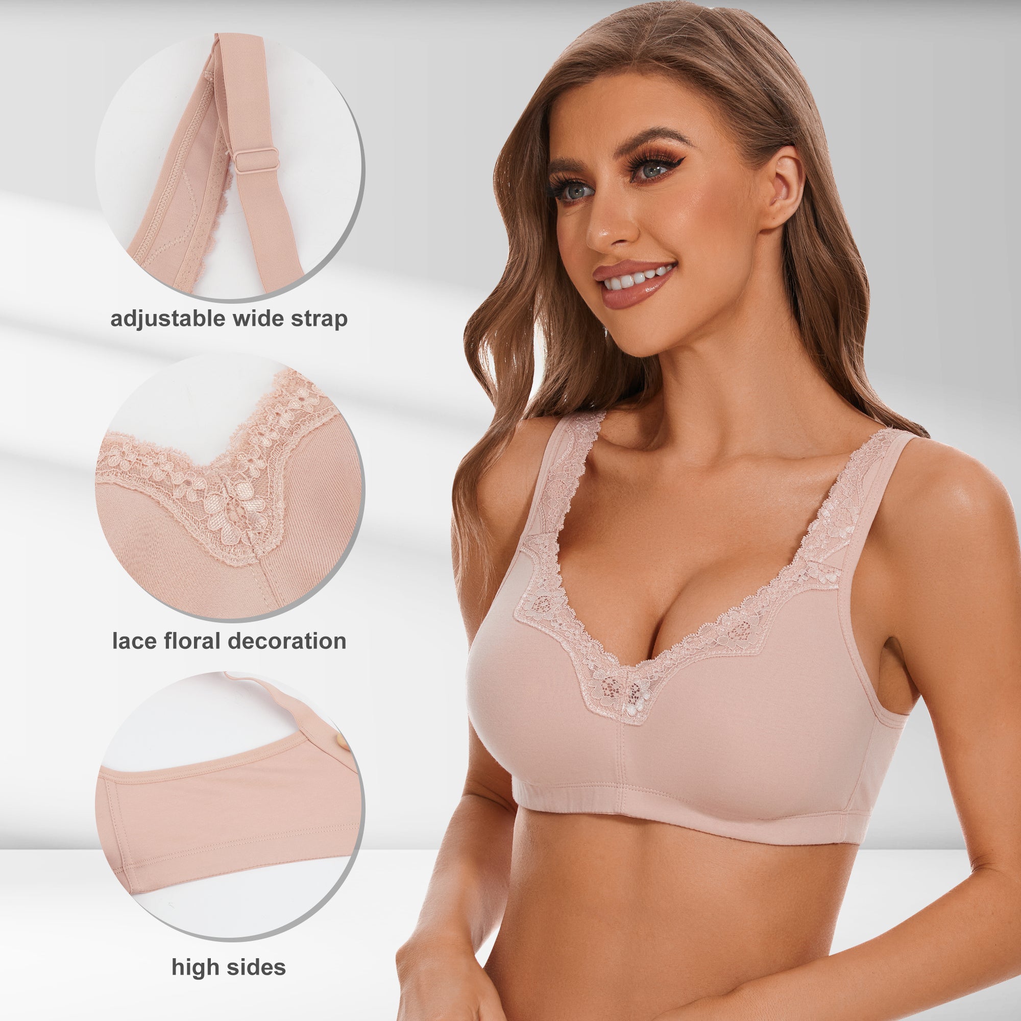 Sheroine Cotton Lace Wirefree Support Bra - Nude
